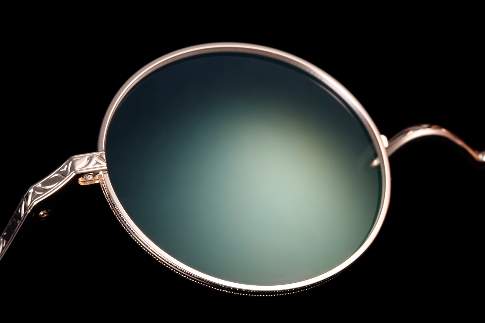 「イチヤマ」といわれる鼻パッドがないデザインは、ビンテージフレームの定石ともいえるスタイルを見事に復刻している。そのアングル、高さは日本人の鼻の高さを意識して型を新規に起こし、最良の掛け心地を実現。クラシカルなディテールを持つ彫金風のヨロイ、テンプルは、メタルフレームならではの繊細さと質感を併せ持つデザインに仕上げられた。