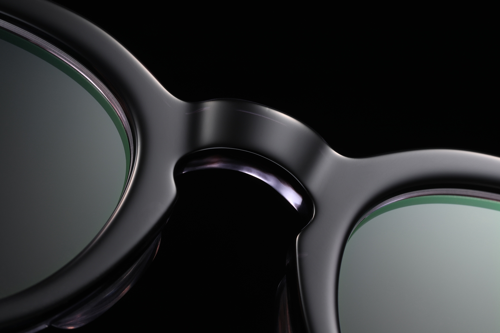 ボリュームのあるセルロイドフレームは、鯖江の熟練工によるハンドメイドにより、比類なき圧倒的な質感で仕上がっている。