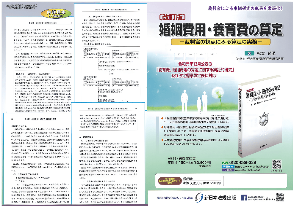 新日本法規出版株式会社(所在地:愛知県名古屋市中区栄1丁目23番20号、代表取締役:星謙一郎 (https://www.sn-hoki.co.jp/))は、2020年6月に発行した「〔改訂版〕婚姻費用・養育費の算定-裁判官の視点にみる算定の実務-」を増刷し、2024年4月19日(金)に入荷いたしました。