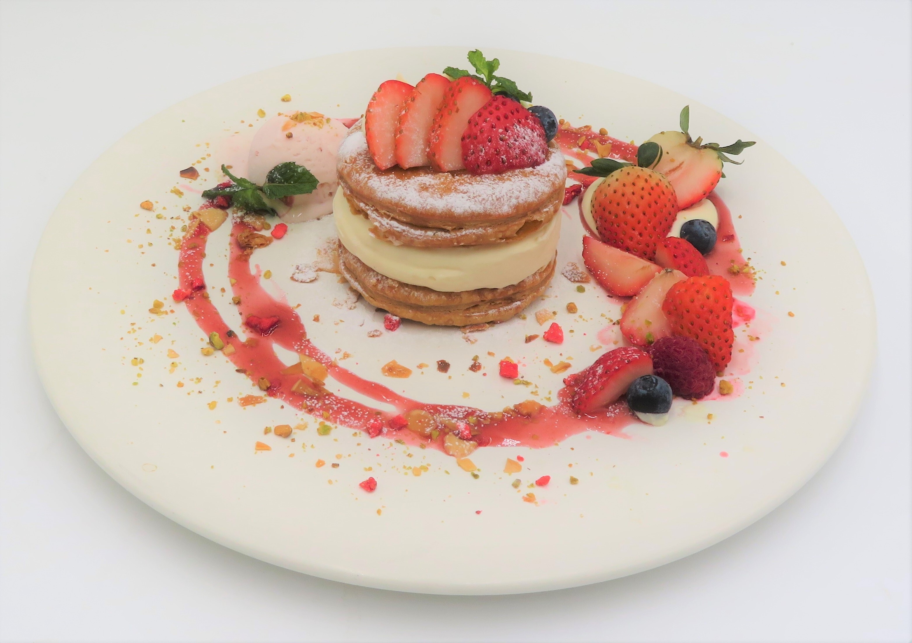 サクサクパイとカスタードクリーム、旬のいちごが相性抜群な可愛らしいプレートです。