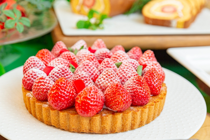 ビュッフェメニューには、当日入荷の3種の苺の食べ比べもお楽しみいただけるほか、苺の赤と抹茶の緑を使い、ガーデンをイメージしたスイーツをご用意しました。赤い苺ムースの上に白い苺のデコレーションが可愛い、天使のいちごとシャルロットをはじめ、苺のショートケーキ、苺ブラウニーや、苺のティラミス、苺ロールケーキなどいちごづくしのメニューから、抹茶のロールケーキやシフォンケーキ、ミルクレープなど抹茶の緑を使ったメニューを合わせてお楽しみいただけます。 またパスタやピザ、サラダ、サンドウィッチといった軽食メニューもご用意しておりますので、ご友人同士やご家族で開放感ある大きな窓からの景色、店内に施された春のガーデンをイメージした装飾の中、色鮮やかなスイーツとお食事で午後のひとときをお過ごしください。