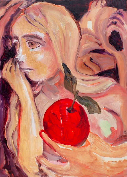 “大矢一穂の作品は、物語の瞬間を捉えるべく、絵具を滑らせていく”