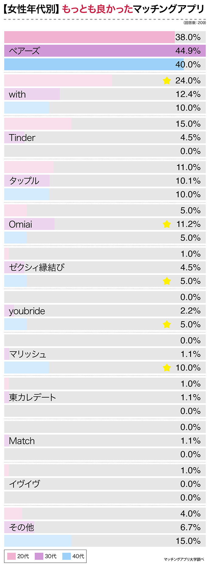使ってみて一番よかったマッチングアプリ1位は「ペアーズ」