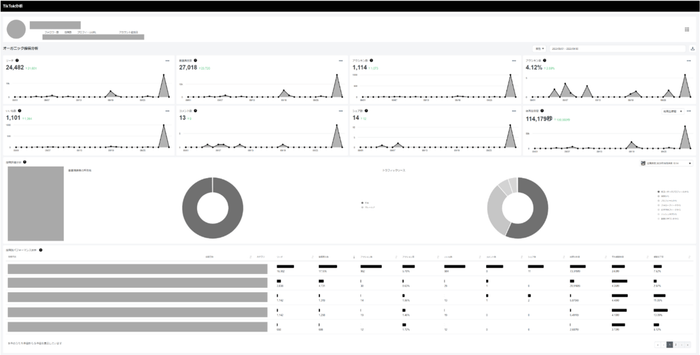 投稿ごとの再生数やユーザーからのアクション数など細かいパフォーマンス数値を可視化