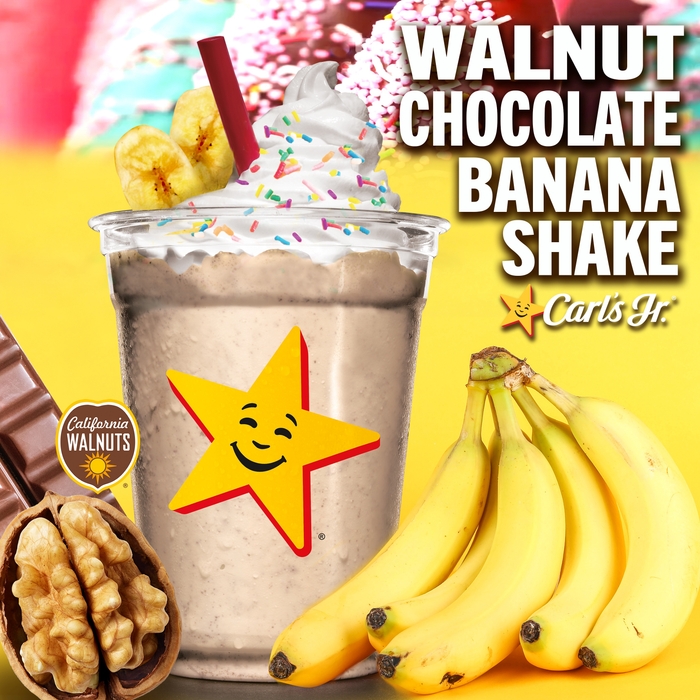 カリフォルニアのくるみ生産農家と加工業者を代表するカリフォルニア くるみ協会は、カールスジュニアジャパン株式会社(本社:東京都中央区)が展開する米国カリフォルニア発プレミアムバーガーレストラン「Carl's Jr.(R)」(以下、カールスジュニア)との共同企画として、7月14日(金)よりカリフォルニア産くるみを使用した「ウォールナッツ チョコバナナ シェイク」が販売されることをご案内いたします。