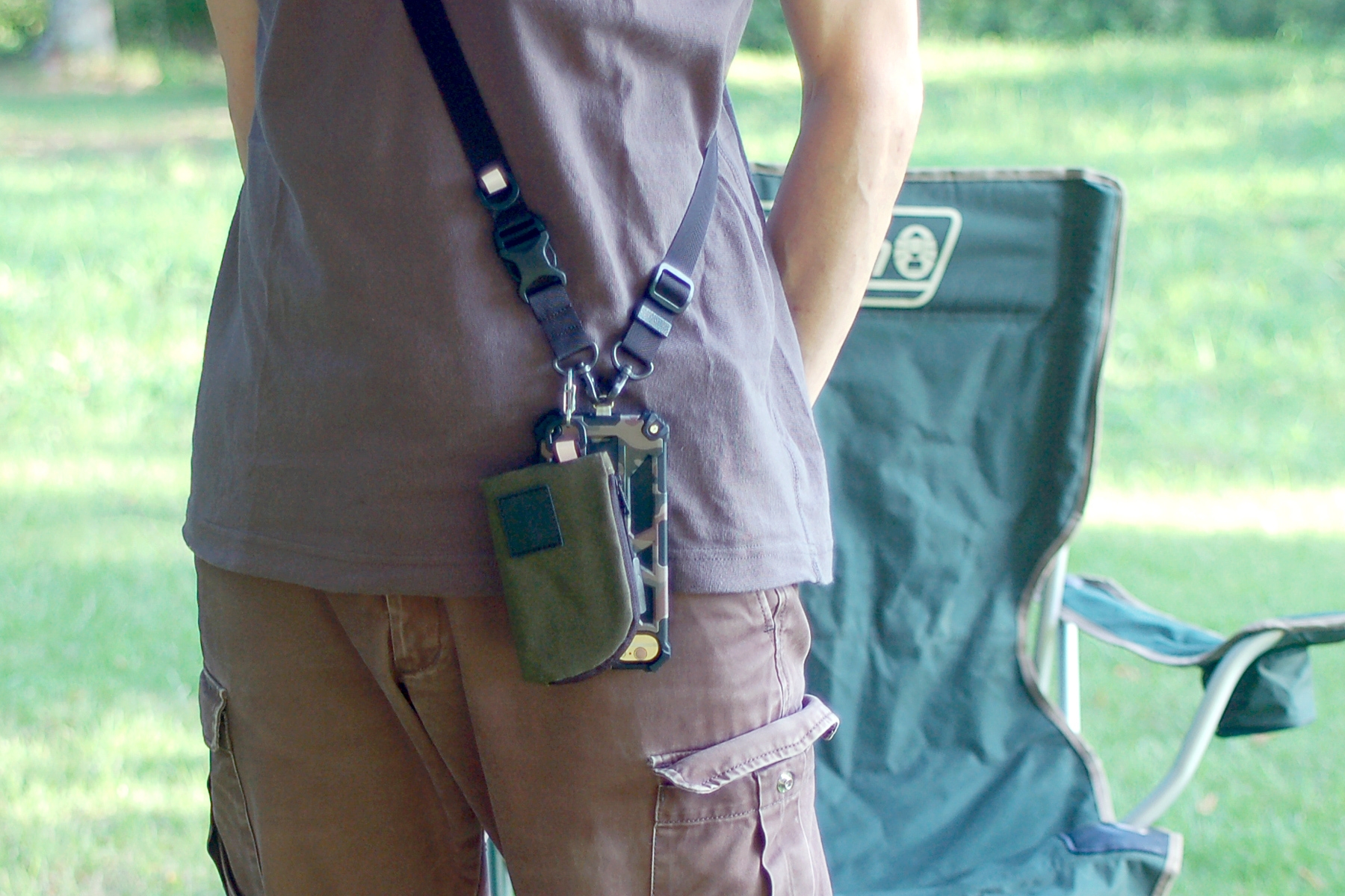 別売の「アウトドアマルチネックストラップ」も大人気で、貴重品を守り手ぶらキャンプが快適になります。