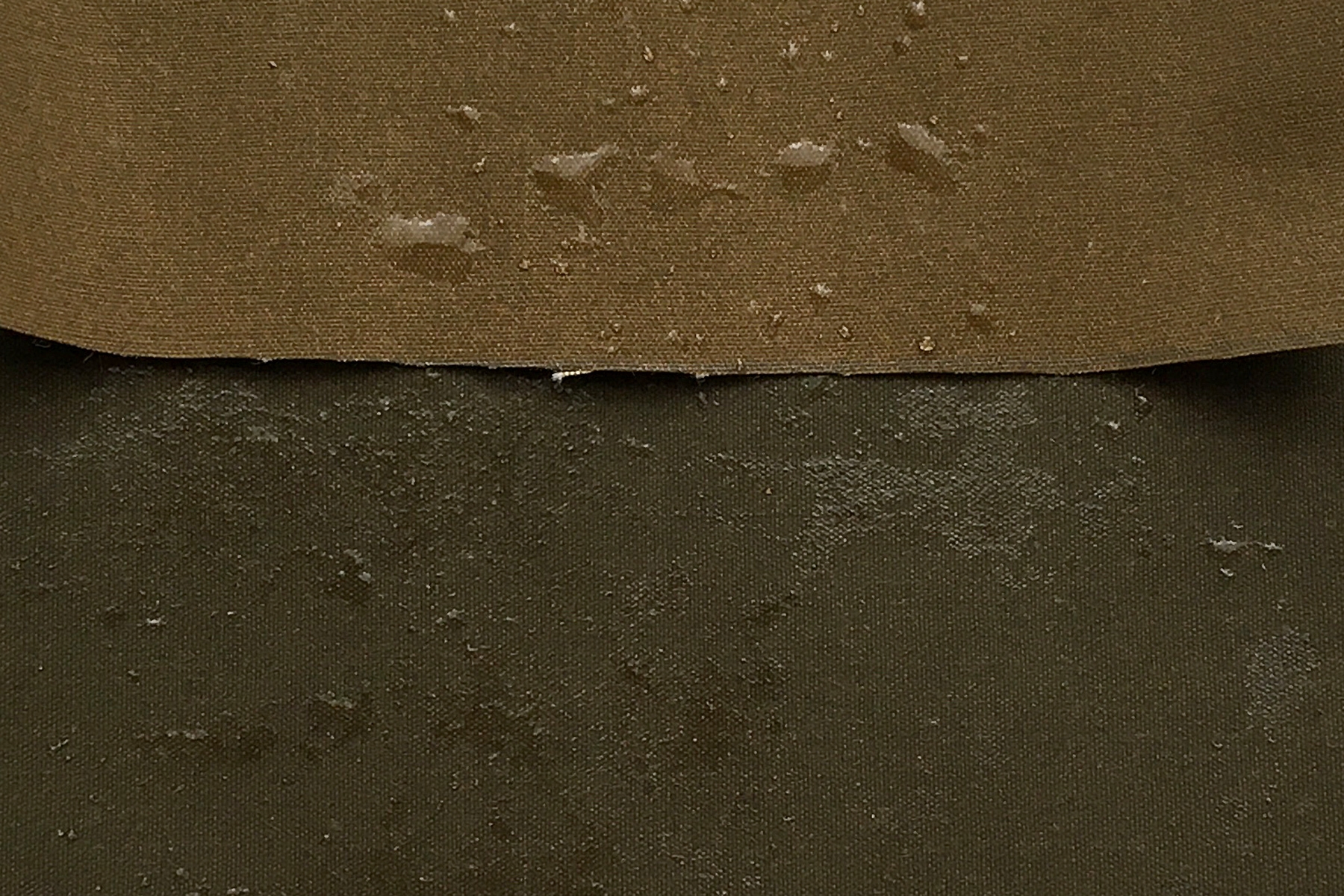 織物の組織密度を上げており、難燃顔料コートもプラスされ、耐水性能も高いレベルです。