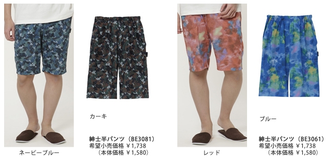 グンゼが1070代の男女1,152名(男性:573名、女性579名)に行ったライフスタイル調査では、約75%の方が「春夏の季節、帰宅後に着替える」と回答。さらに「主に何に着替えるか」との問いに対しては、2050代の男性の約40%が「Tシャツと半パンツ」と回答しました。そこで、❝シンプルでかっこいい❞をテーマにトレンドを意識したリラクシングスタイルが人気の「BODY WILD」から半パンツ8種類をラインアップしました。サラッとした肌触りの素材に、シンプルなTシャツと合わせてもアクセントになる鮮やかな柄をプリント、便利なポケット付きでおうち時間を快適に過ごすアイテムに仕上げています。