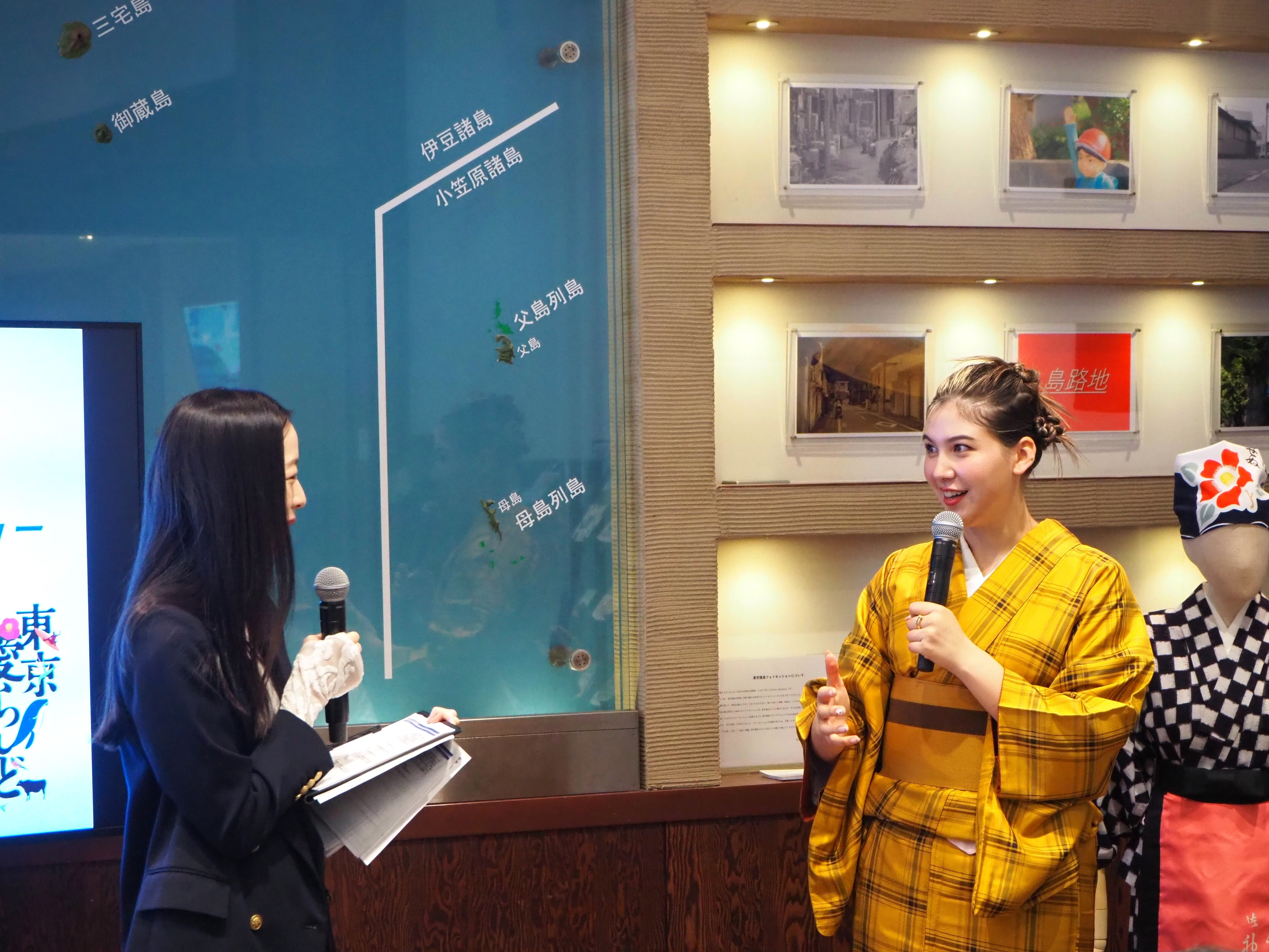 八丈島の伝統衣装・黄八丈を着用し、東京諸島のSDGsの取組みをもとに、 ファッション×SDGsについて語る! 「東京諸島SDGsギャラリートークショーin東京愛らんど」開催!
