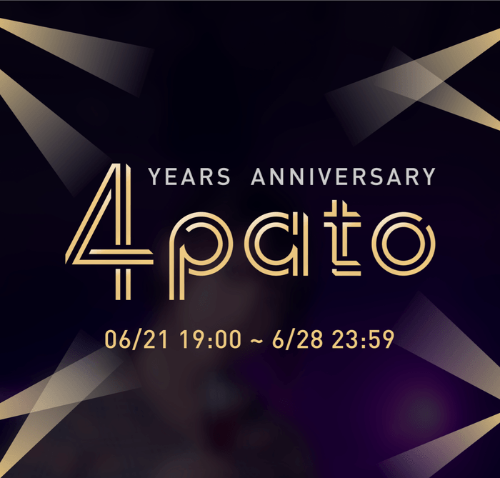 株式会社キネカは、日本最大級のエンターテイメント特化型スキルシェアリングサービス「pato(パト)」において、2021/06/17(木)にサービス開始から4周年を迎えました。pato登録ユーザーに向けて日頃のご愛顧への感謝の気持ちをこめて、1週間で「オリジナルグッズ」や「累計500万円相当のクーポン」を提供する記念イベントを2021/6/21から開催いたします。