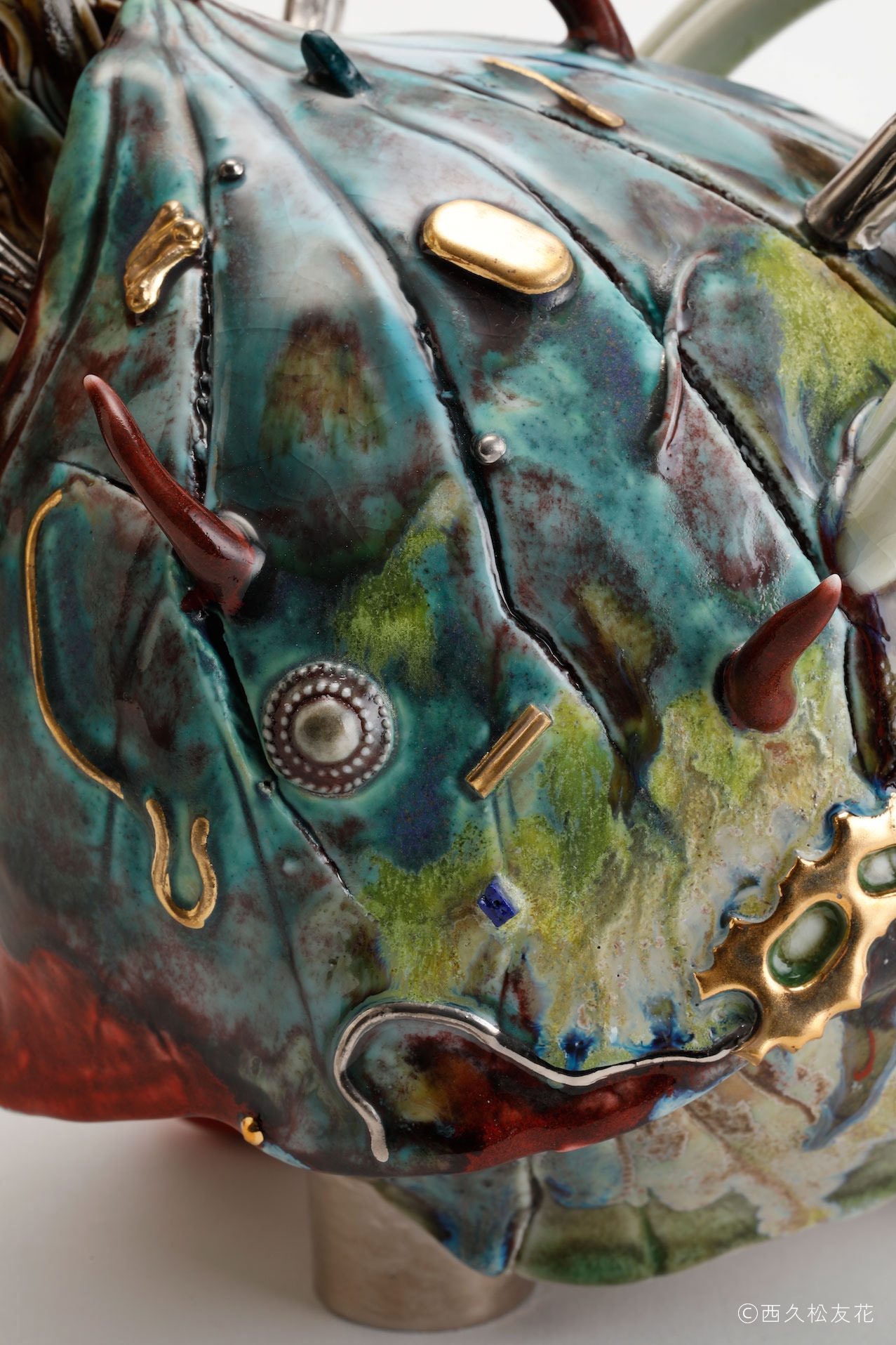 同じく陶芸家の西久松友花は、生物が作り出す巣や営み、生命の循環などに関心を持ち、それらの形象をドローイングによって部分的に抽出し、陶立体に変換しています。また表面に装飾を施しながら、様々な性質・表情を持つ釉薬を造形に応じて使い分けることで多彩な表情を生み出しています。其々の生物が独自に構築した「環世界」をテーマに、ミクロの世界を探ります。期間中、ROD GALLERYで個展を開催しています。