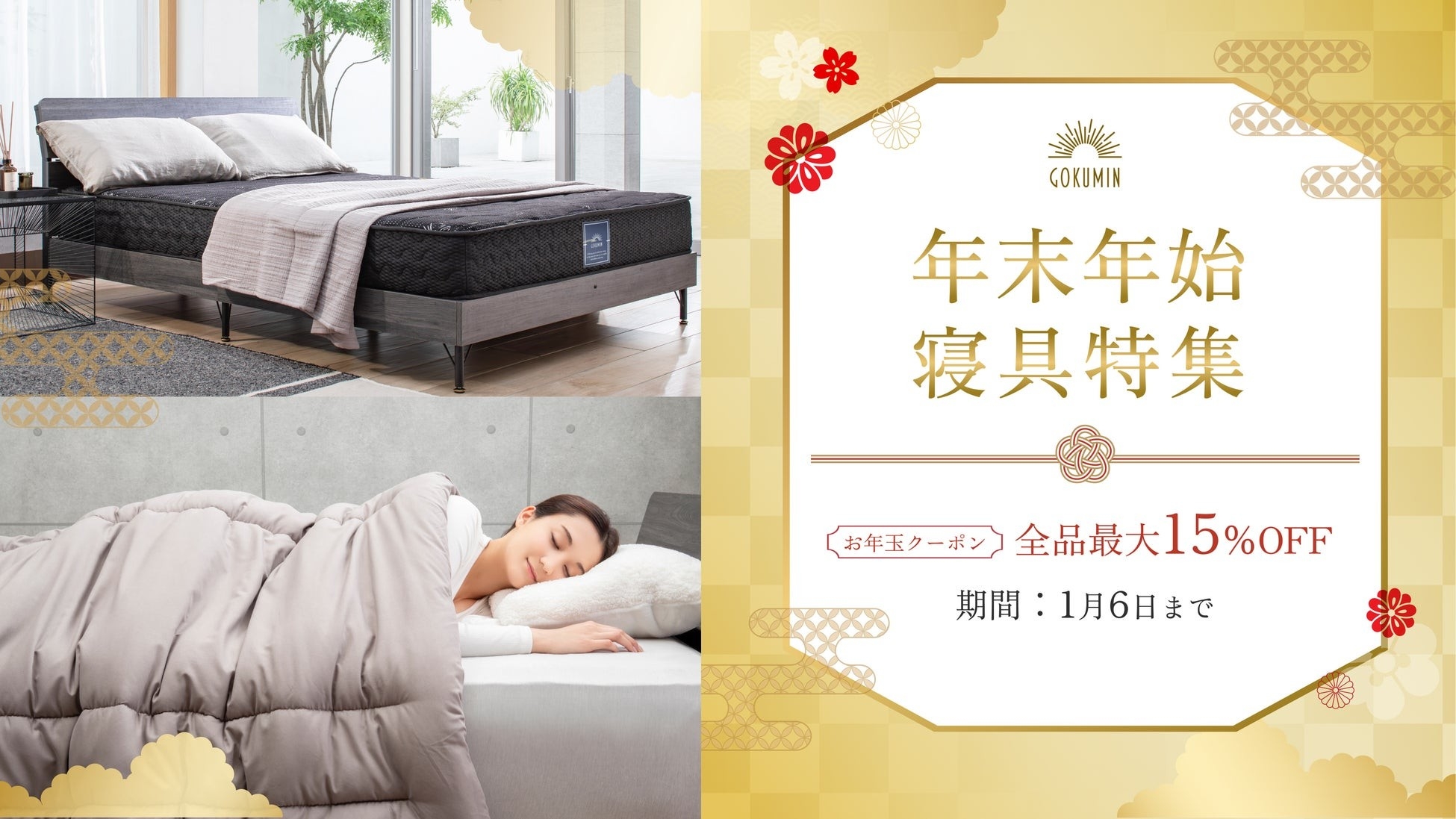 新年のパフォーマンスは睡眠で決まる。公式EC内限定で年末年始用のクーポン配布を開始いたしました。(https://gokumin.co.jp/collections/year-end-bedding)