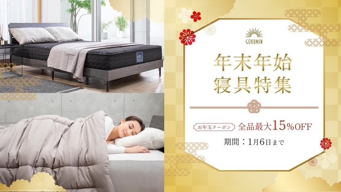 株式会社KURUKURU(本社:東京都中央区銀座、代表取締役:関沢康寛)が展開する寝具ブランド 「GOKUMIN」 は、年末年始のお買い物シーズンに合わせ、2025年12月26日よりGOKUMIN公式ECで使用できる “年末年始用のクーポン” を配布開始いたしました。それに併せまして本リリースでは、毎年お問い合わせの多い「快眠環境づくりのための寝具TOP6」をGOKUMINの商品広報担当者がセレクトし、今年のおすすめ厳選アイテムとしてご紹介いたします。