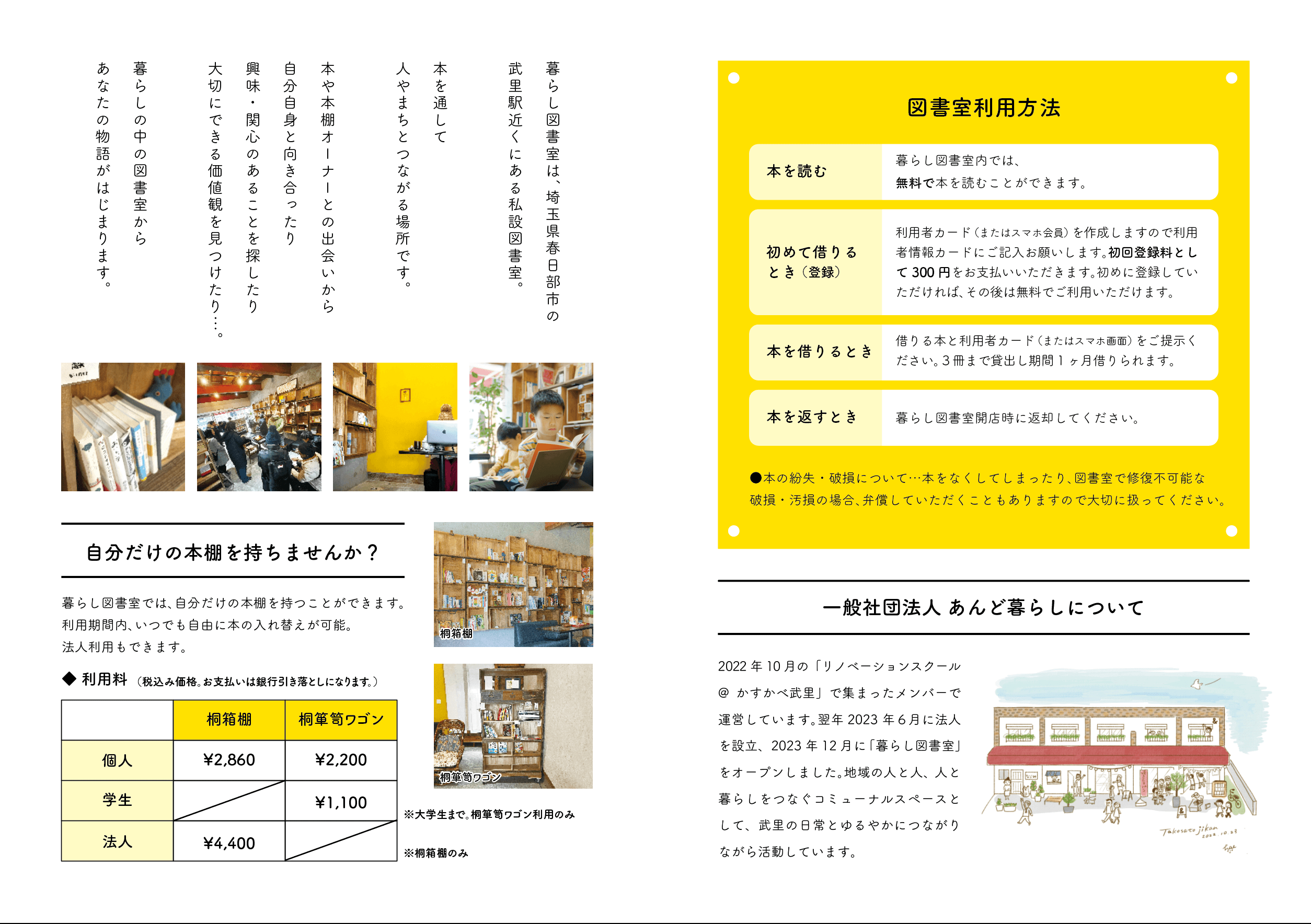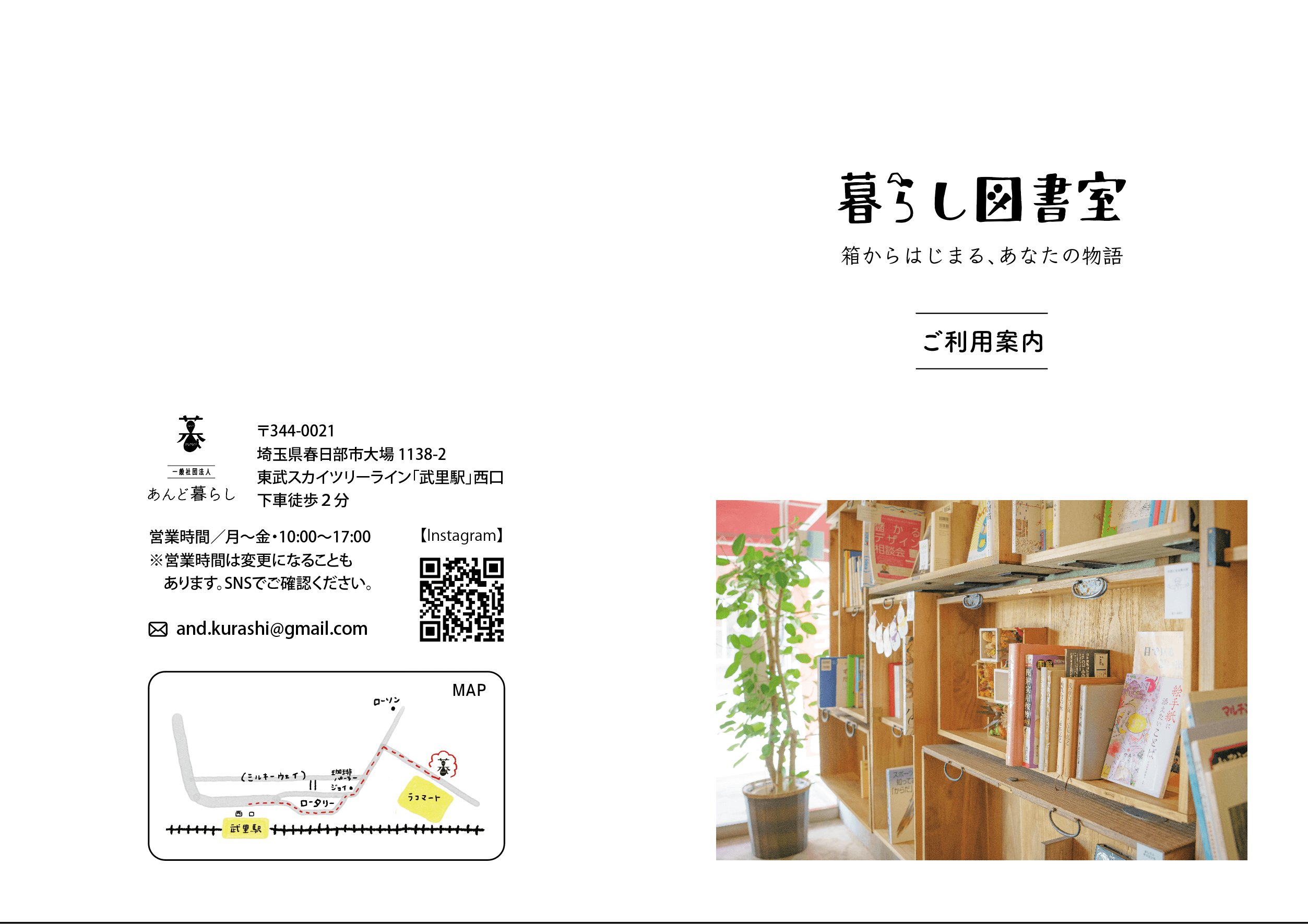 私たちは埼玉県春日部市武里で、空き店舗をリノベーションした「暮らし図書室」という私設図書館を運営しています。その建物の活用できていない2階スペースを、武里商店街にほとんどない「親子連れや学生がふらっと寄れる場所」にできないか、という思いで動き出したのが、今回の「あんどリビング」という構想です。