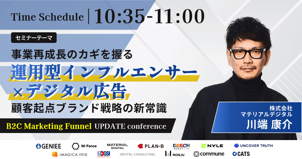11月11日(火)開催 マテリアルデジタル取締役の川端が 「B2C Marketing Funnel UPDATE conference ~購買ファネルから紐解くCVR改善の新常識~」に登壇