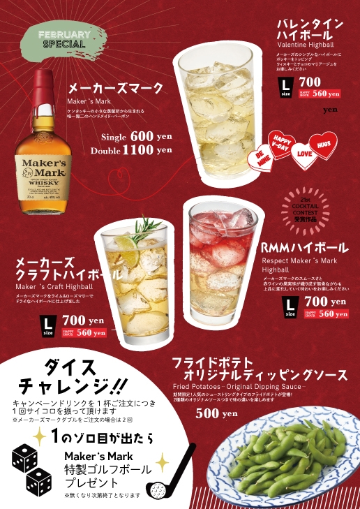 株式会社ハブ(本社:東京都千代田区、代表取締役社長:太田 剛)が運営するHUB・82は、2023年2月8日にメンバー会員様を対象に終日ドリンク30%OFF(一部店舗は16時~)となる「裏ハブの日」を開催いたします。また、2023年2月におきましては、バレンタインデーを演出するオリジナルカクテルやハイボールを販売するFEBRUARY SPECIALキャンペーンをHUB・82の両ブランドにて展開いたします。