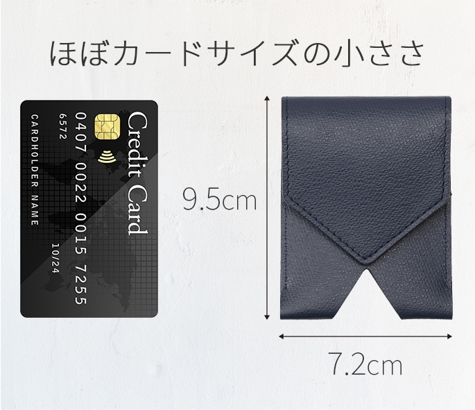 ほぼカードサイズの大きさで、中に何も収納しない状態で、その厚さは7mm。