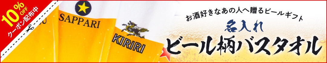 7月31日「ビーチの日」から先着100注文に、『ビール柄バスタオル』を通常価格より10%オフになるクーポンを配布いたします。この機会に、ご自宅用はもちろん、ギフト用としてもぴったりなビール柄バスタオルをお求めください。