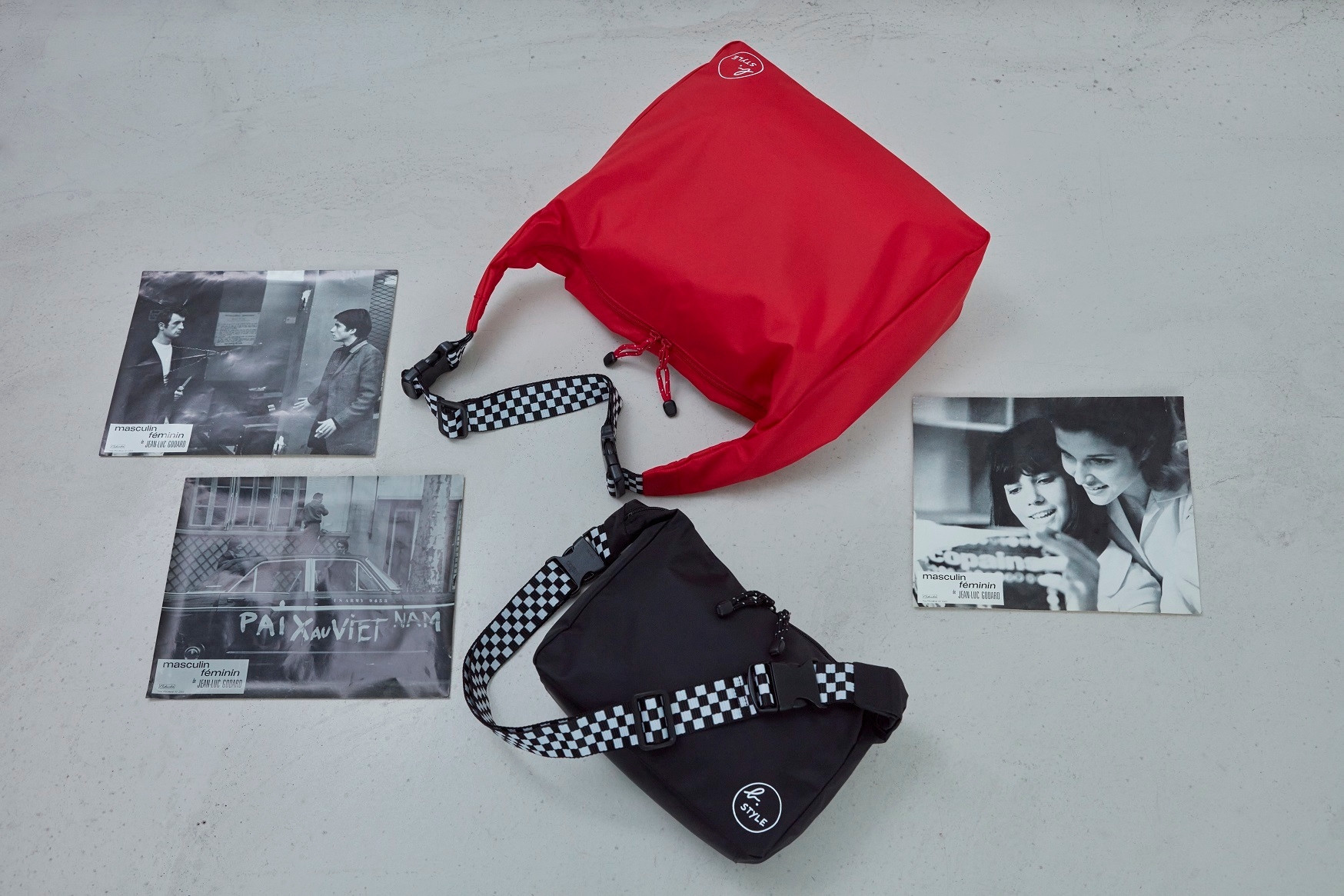 また、チェッカーフラッグ柄のショルダーストラップがポイントのナイロンバッグはジェンダーレスに取り入れられ、ストリートファッションに合わせて“b. style”を完成させます。