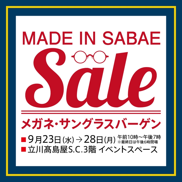高品質なジャパンメイドフレームがお買得価格にて大集合! 立川髙島屋S.C.にて「メガネ・サングラスバーゲン」開催