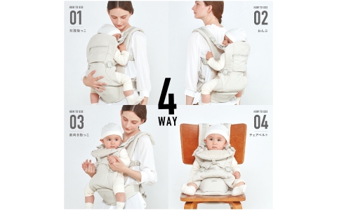 ・仕様 : 対面抱っこ、おんぶ、前向き抱っこ、チェアベルト