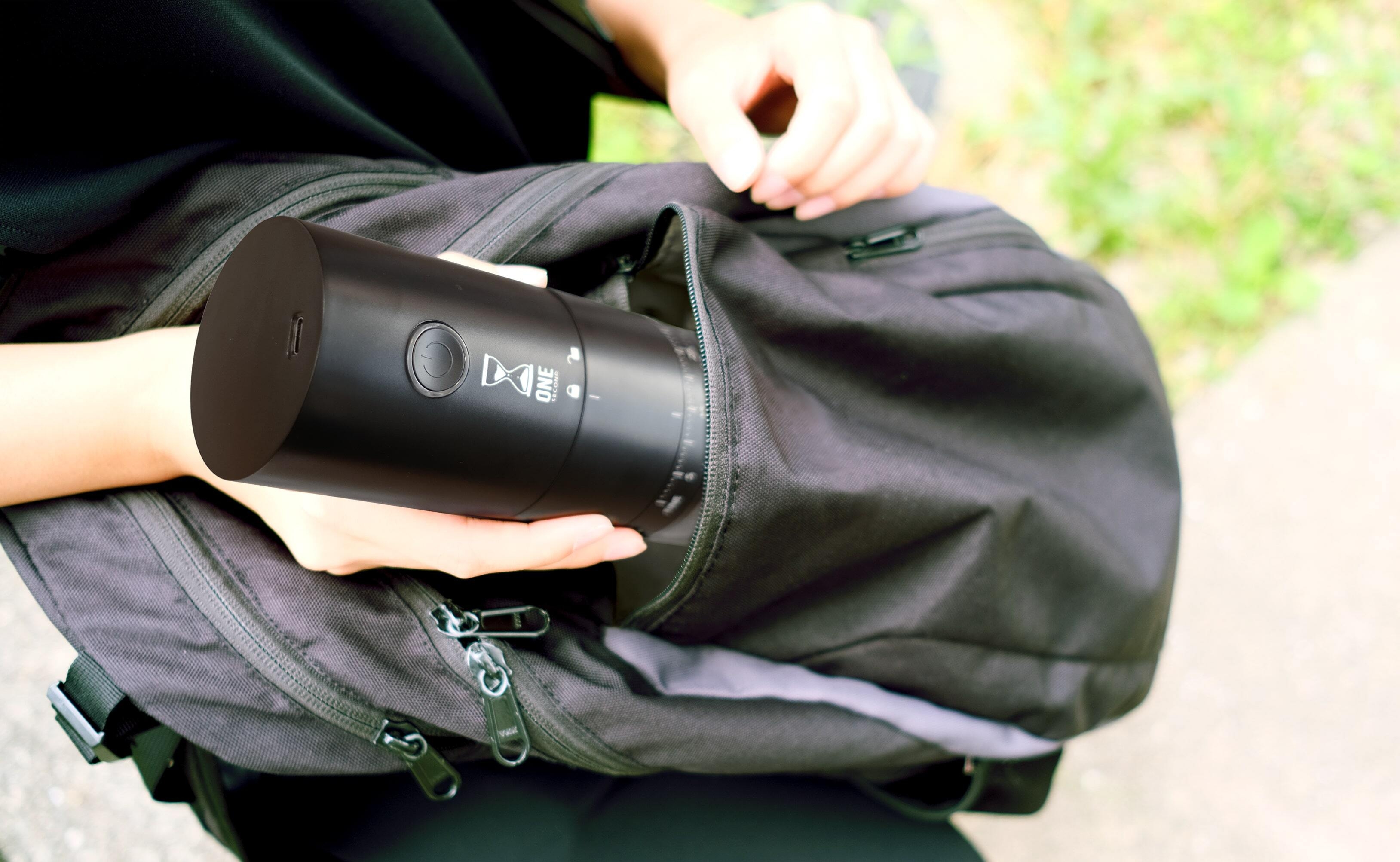 コーヒー豆を入れて、好みの粗さにセットできたら、あとはボタンを押すだけのシンプルな操作方法です。コーヒー豆を挽いてる間は他の事ができるので、キャンプや自宅でも、豆を挽いてる時間を有効活用できます。