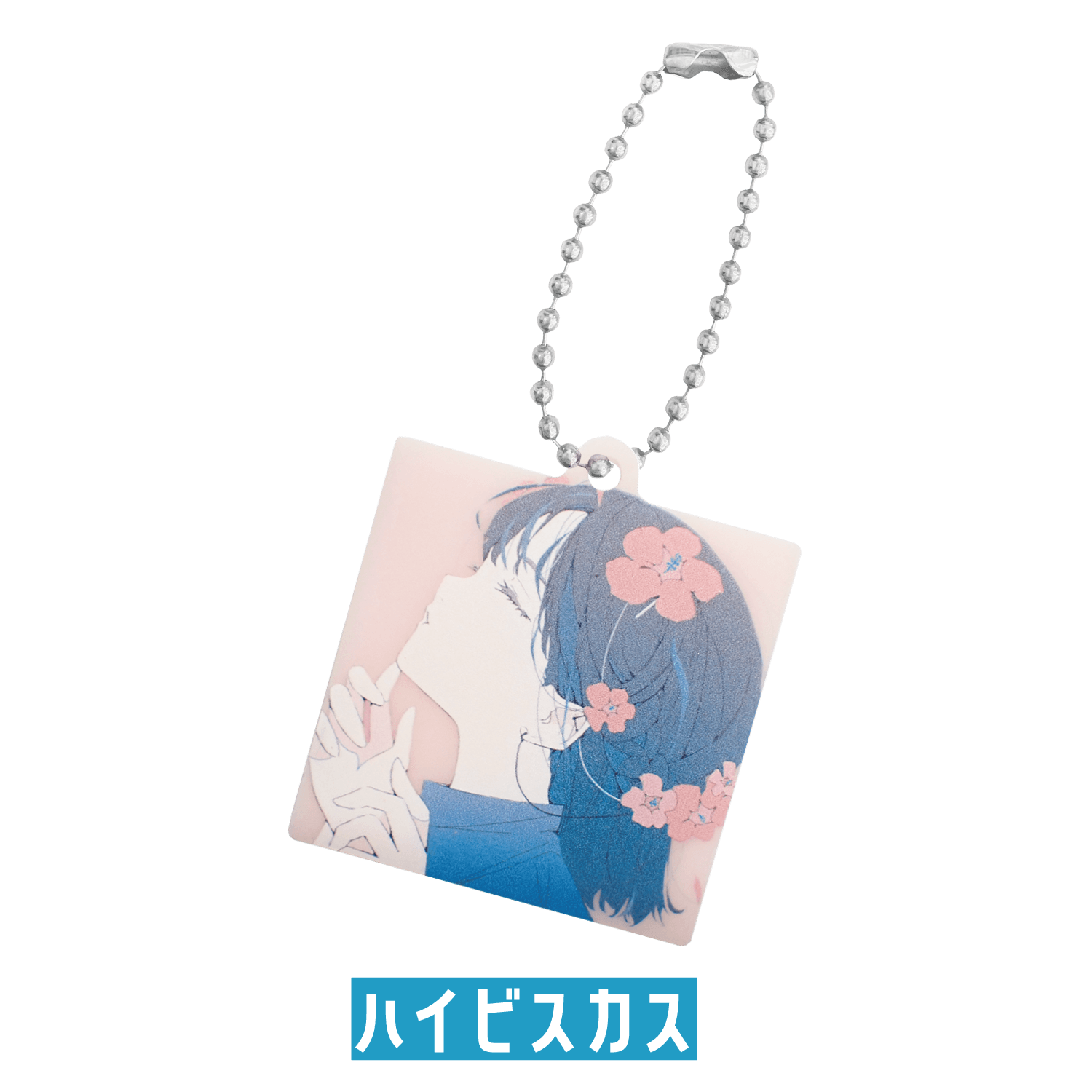 今回のラインナップは、このカプセルでしか手に入らないイラストレーター「春」による全て完全書き下ろし作品!美しい花言葉をモチーフにした作品は、アサガオ、アジサイ、クチナシ、ササユリ、ハイビスカス、ヒマワリの全6種による約40mmのアクリルキーホルダー。全国のガチャガチャにて販売いたします。