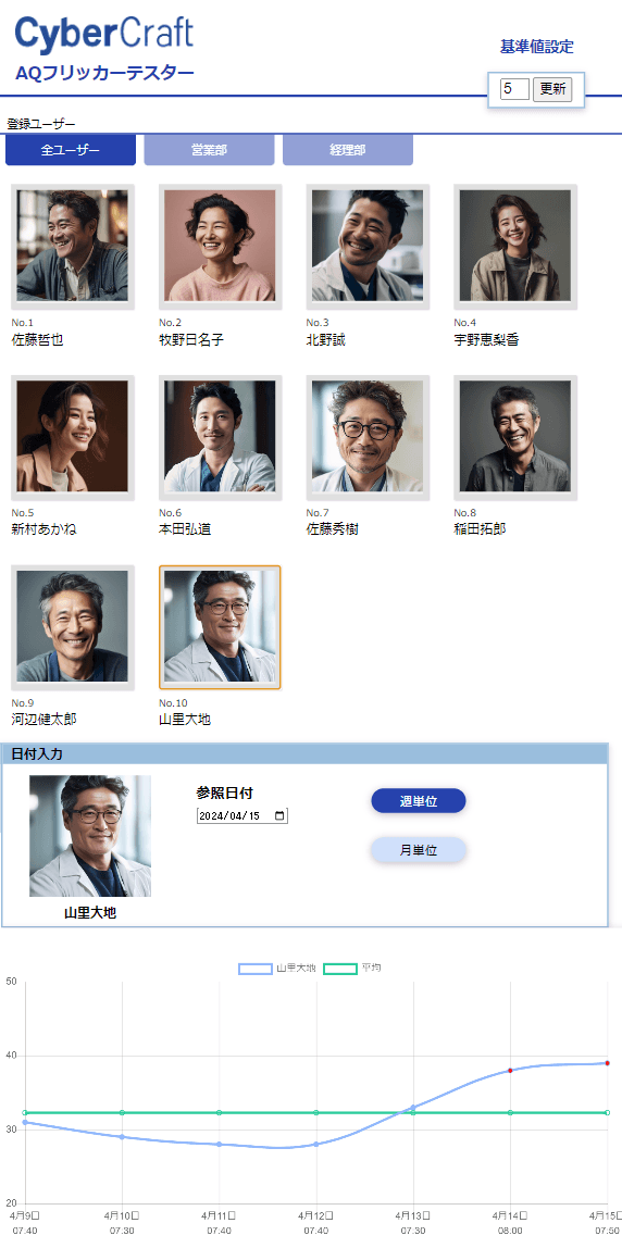 フリッカー値は個人差が大きいので、毎日測定して、ご自分の中心値を求めることから傾向を判定することが可能になります。
