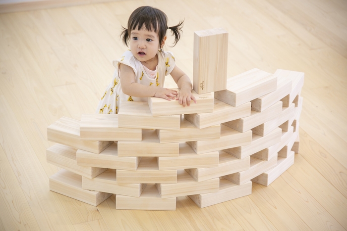 きみたつレンガを積み上げて遊ぼう!他にも兵庫県産ヒノキの端材で「お箸」や「廃材ロボット」体験もできます!