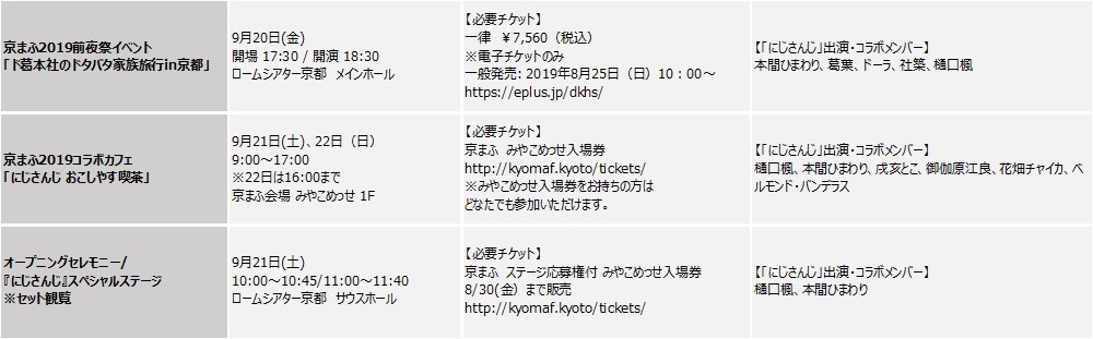 西日本最大級のマンガ・アニメイベント 『京都国際マンガ・アニメフェア2019』 ■「にじさんじ おこしやす喫茶」メンバー 接客配信スケジュール決定■ ■「あんさんぶるスターズ!」アニメイトキッチンカーが 京まふ会場に登場!■ ■「にじさんじ」京まふ2019特番[京まふ情報局]スタート■ ■優先入場券 8月29日(木)10:00より販売開始!■ ■京まふステージ応募権付入場券8月30日(金)まで販売!■ | NEWSCAST