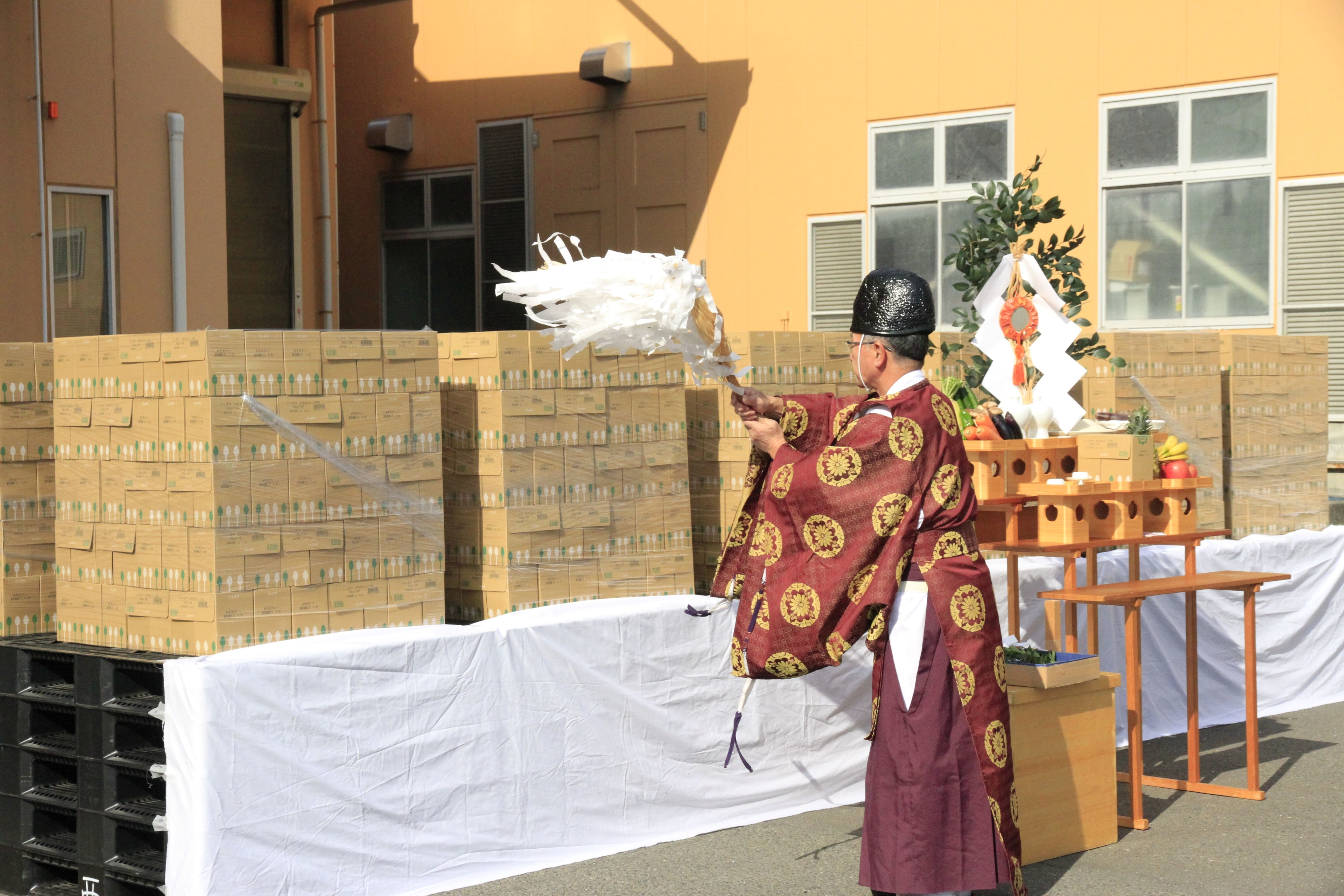 「良い年でありますように」と願いを込めて、本社工場のある宮城県岩沼市の二ノ倉地区の神明社の宮司様にお祓いをしていただきました(2020年11月16日大安)。