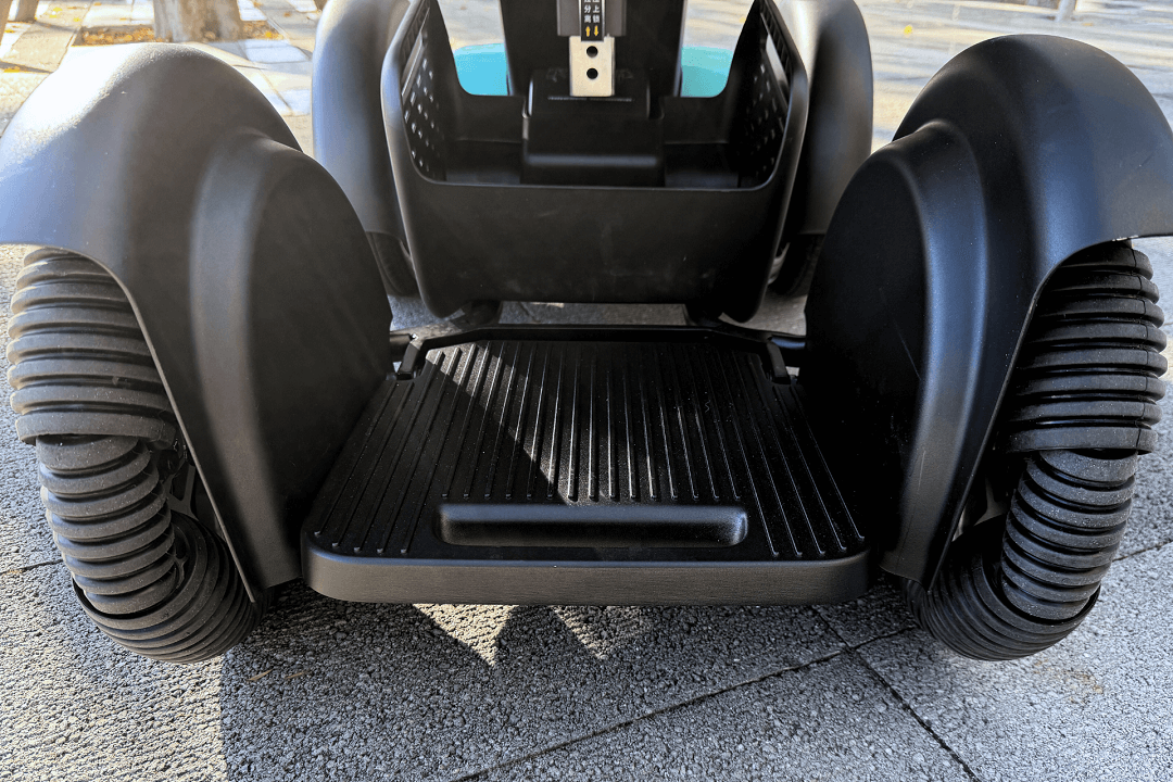 前輪には3Dホイールを採用。最小回転半径はわずか80cmなので狭い場所でもスムーズに方向転換が可能です。屋内や歩道、施設内など、限られたスペースでもストレスなく扱えます。