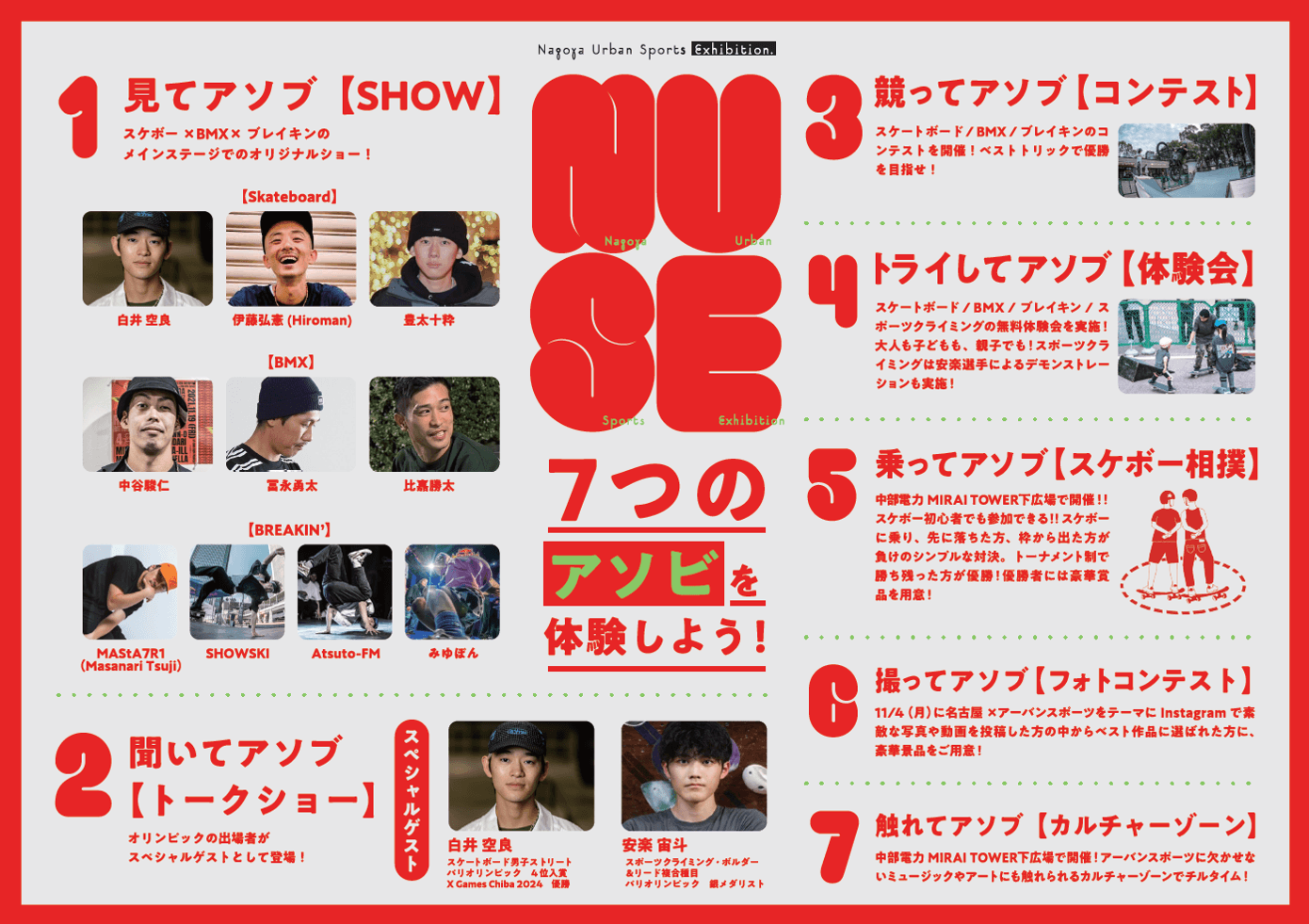 著名アスリートも来場! アーバンスポーツの魅力を発信する 「NAGOYA URBAN SPORTS EXHIBITION(NUSE)」を 11月4日(月・振休)に開催!