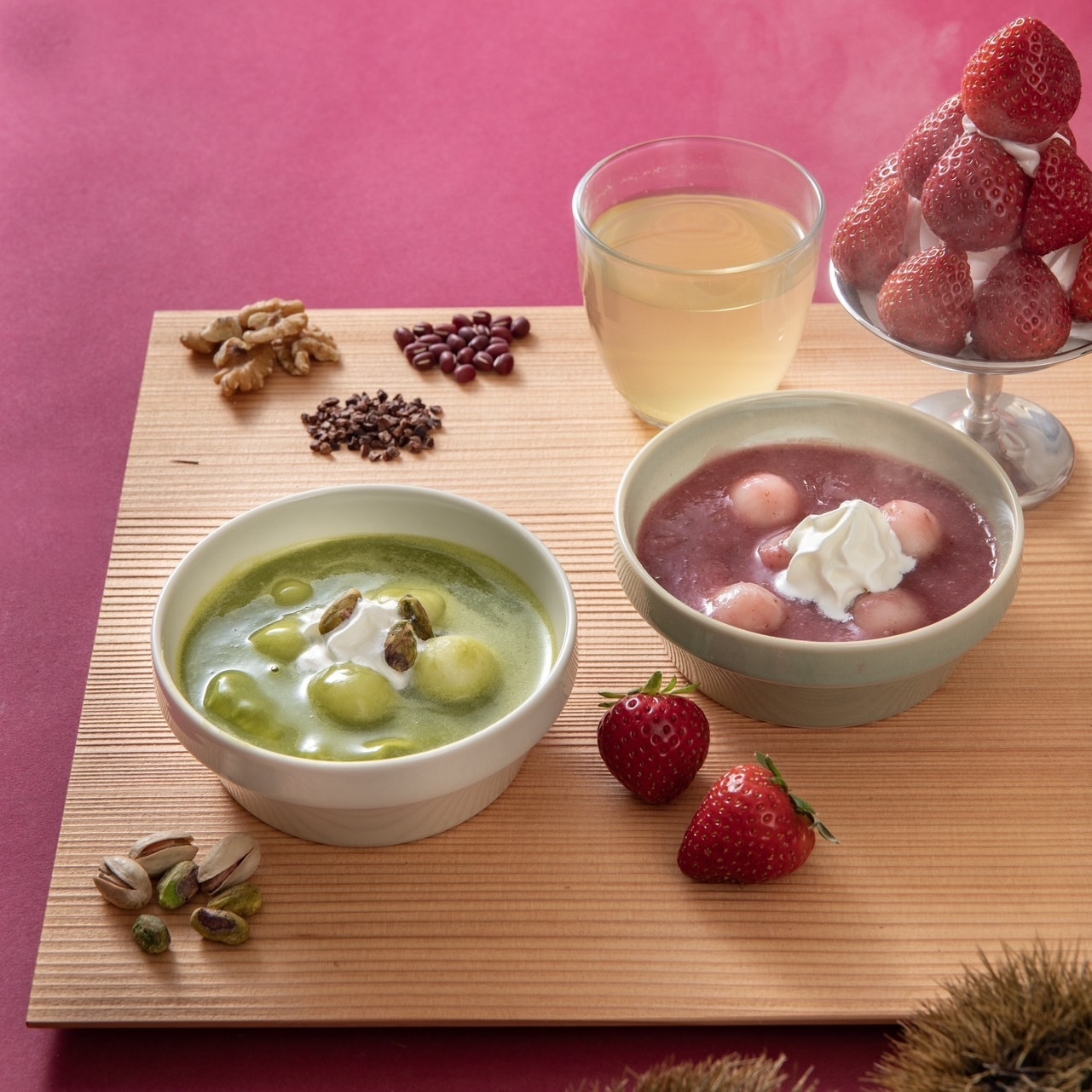 SNSで話題のスーパーフード、とろっと食感が新しい「焼き柿(オリジナルサワークリームソース添え)」と、今回特別に先行販売が決定した「果物ぜんざい」と盛りだくさんの限定メニューを1階カフェ「まほら」で楽しんでいただけるほか、柿色パンを使った「柿色フルーツサンド」を限定販売。