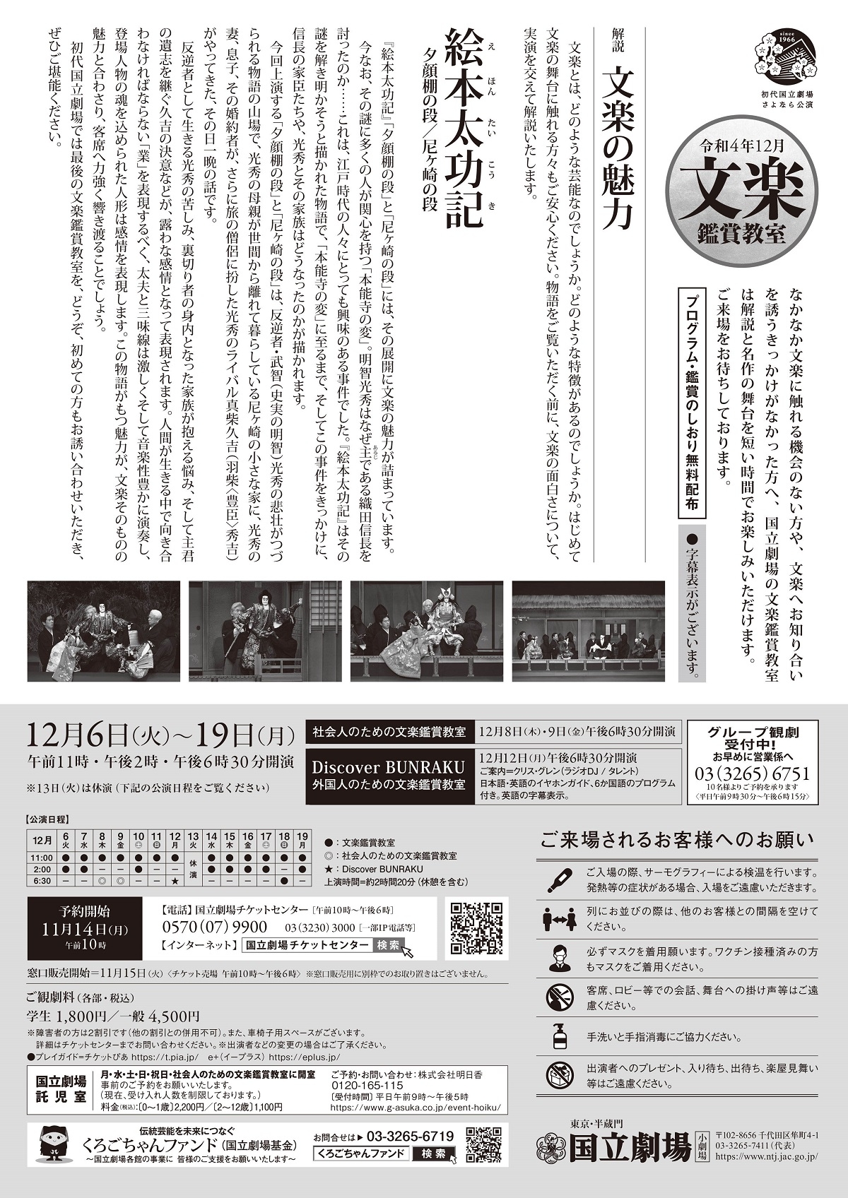 「初代国立劇場さよなら公演」令和4年12月文楽鑑賞教室/社会人のための文楽鑑賞教室『絵本太功記』