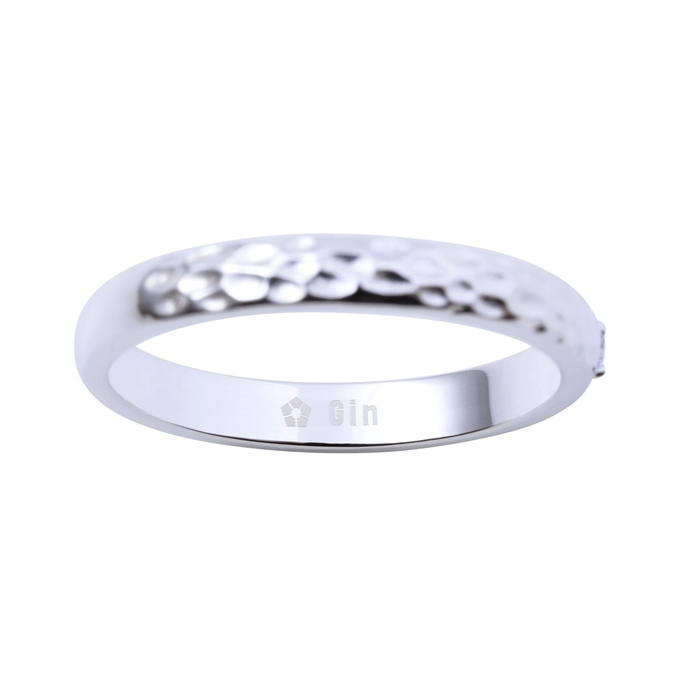 内側に青い監獄と名前を刻印。シンプルで日常使いしやすいリングです。