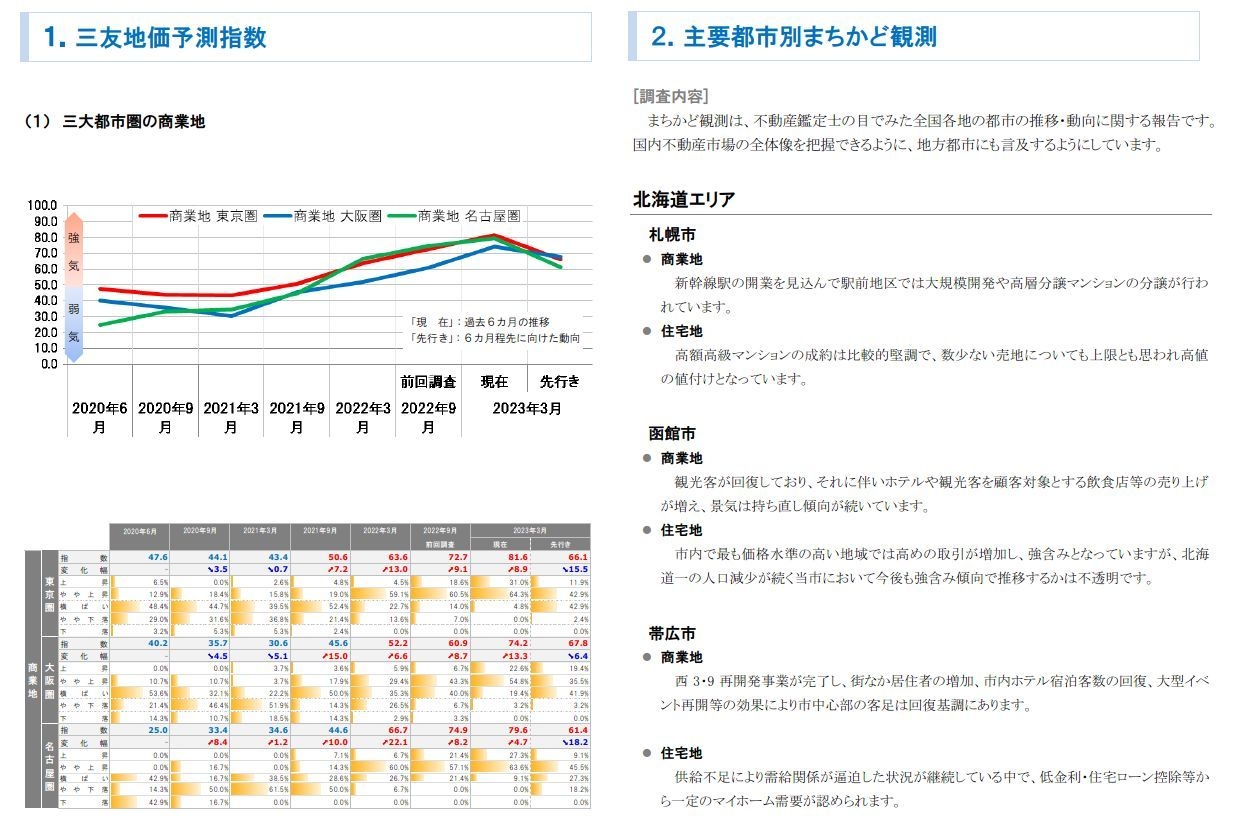三友地価予測指数(2023年3月調査)を発表 不動産鑑定士の 目で見た不動産市場の動向に関する定性的な報告も同時発表