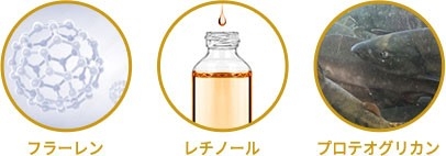 金・銀・プラチナ・パールに加え、エイジングケア※ 成分のフラーレンやレチノール、高い保湿力を誇るプロテオグリカンや2種のコラーゲンなどを配合。