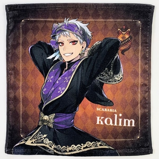 4つ目は、カリム・アルアジームのタオルです。カリムは2年生でスカラビア寮の寮長だそう。カリムの元ネタは候補が2つあり『アラジン』のサルタン王かアラジンと考えられているそうです。