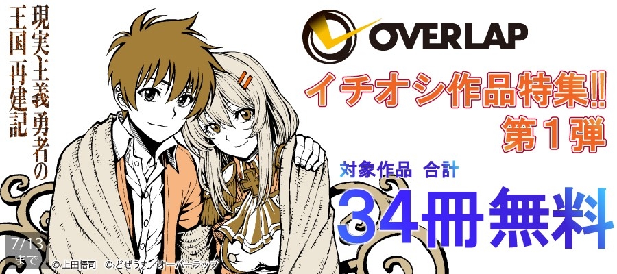 オーバーラップイチオシ作品特集としてオーバーラップから刊行されているライトノベルとコミックスが各電子ストアにて34冊無料になるキャンペーンを7月4日(金)~7月13日(日)まで実施いたします。