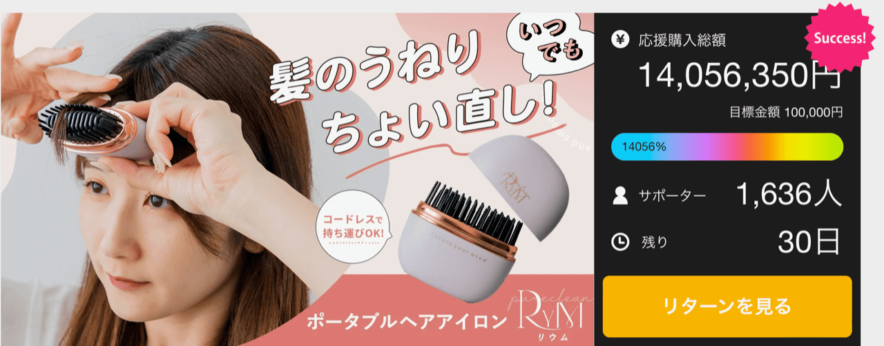 持ち歩ける手のひらサイズのヘアアイロン「RYM(リウム)」 Makuakeにて目標金額100%を達成