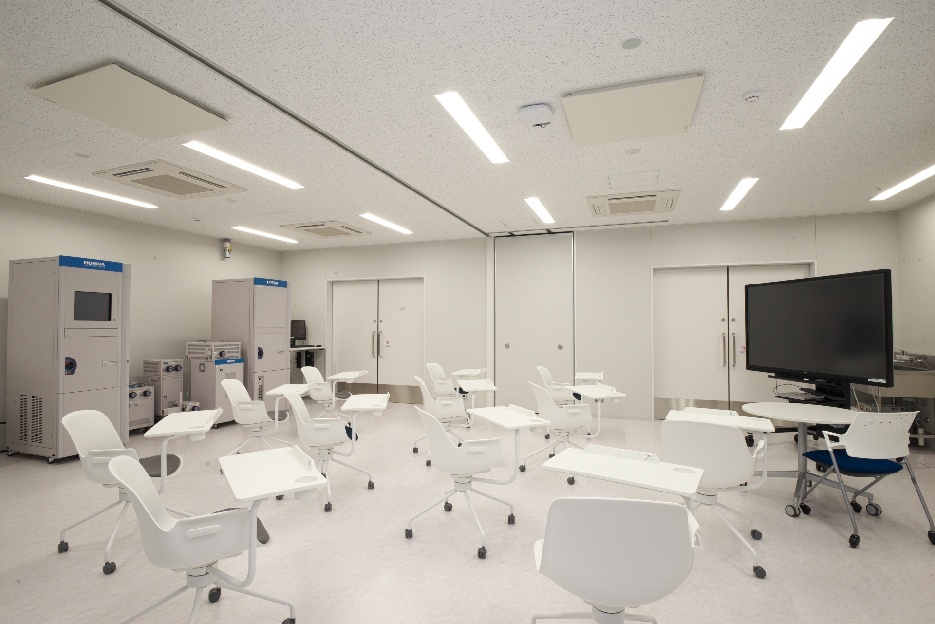 トレーニングセンターを従来比1.6倍に拡張し、コロナ禍における感染予防に寄与するオンライントレーニング用のスタジオ機能も新たに導入しました。同センターではお客様に向けて、HORIBA製品のセミナーや実機を用いたトレーニングを行います。また、HORIBAグループ国内外拠点のサービスエンジニア育成の場としても活用し、グローバルでの顧客サポートレベルを向上していきます。