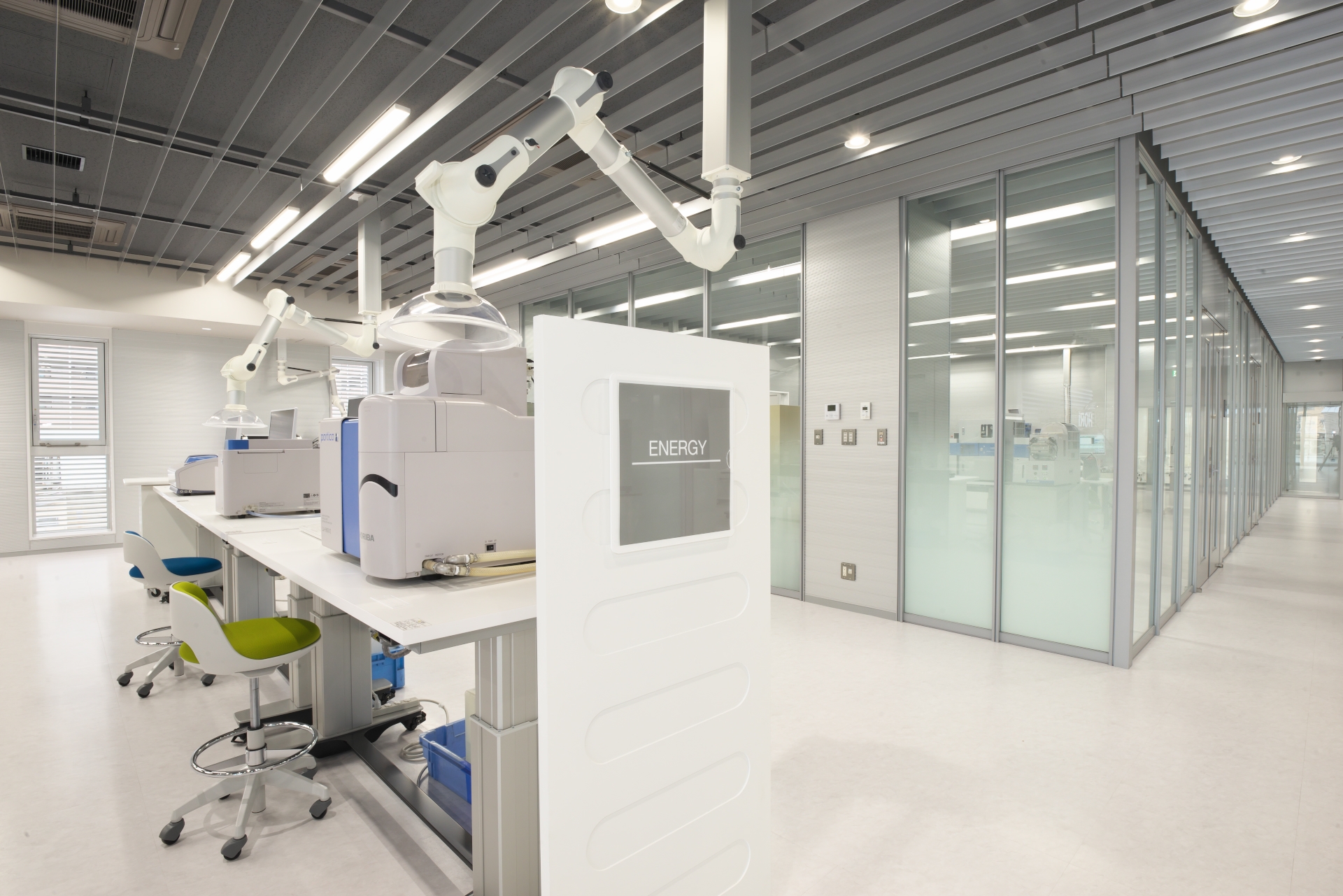 ショールームとしての機能を兼ねた分析ラボ「Analytical Solution Plaza」の面積を従来比約2倍に拡張しました。環境、エネルギー、先端材料、ライフサイエンスなどHORIBAの注力市場別にエリアを設けて分析設備を増強。ライフサイエンス・エリアでは、これまで対応が難しかったヒト由来の培養細胞やエクソソーム※1、菌類といったバイオサンプルの分析が可能となりました。国内外にある17の分析ラボを繋ぎ、分析・計測メーカーならではの高い技術力と培ってきたノウハウで、お客様のニーズに応じたアプリケーションの提案や、受託分析、共同開発を推進します。2021年6月には同ラボで、はやぶさ2が採取したリュウグウの砂や石などを分析する予定です。
