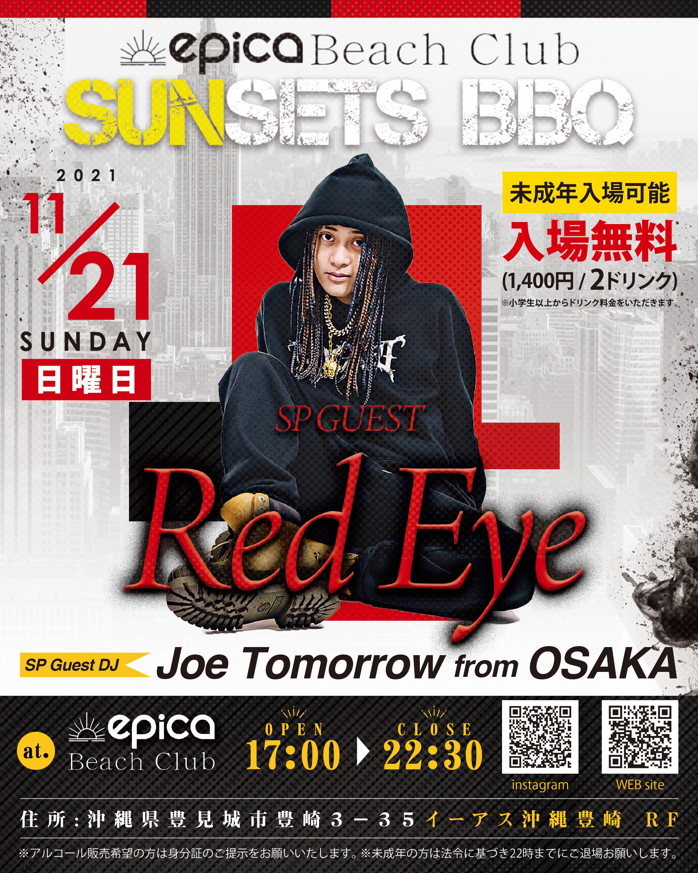 11/21(日)『epica SUNSET BBQ FES』を 沖縄 イーアス豊崎屋上にある『epica beach club』にて開催!!