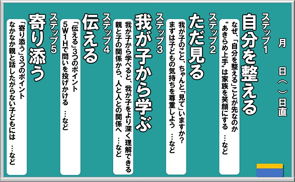 そんな方々のために、庄子さんが学校の教室で行ってきたこと、保護者の方から学んだケーススタディなどをもとに、5つのステップと5つのマジックワードにまとめたのが本書です。