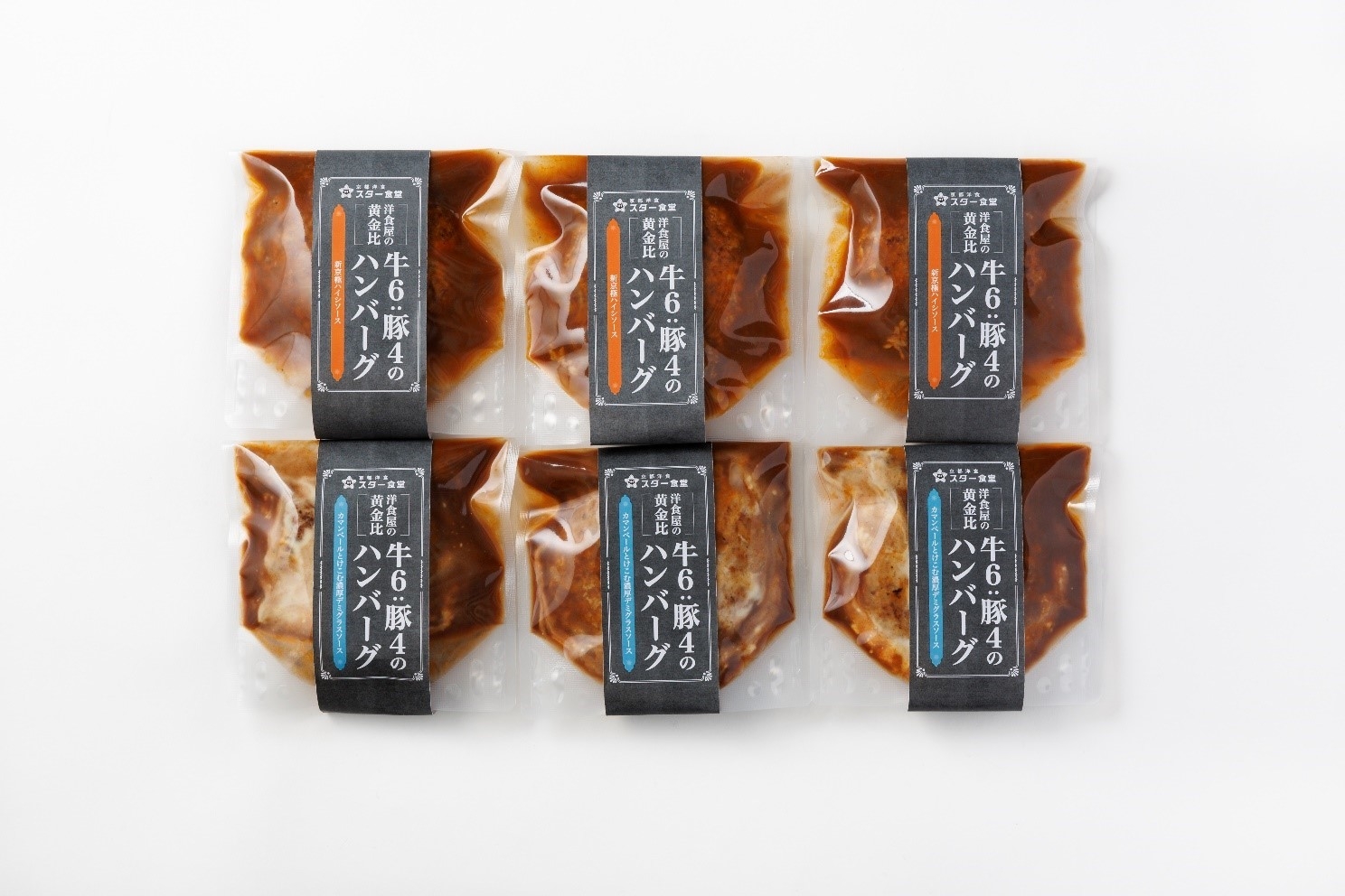 一方、「カマンベールとけこむ濃厚デミグラスソース」は、スター食堂伝統のデミグラスソースにカマンベールチーズを溶け込ませて作ったチーズハンバーグソース。ほんのり甘く、奥深い味わいのデミグラスソースに、カマンベールのとろりとクリーミーで上品な濃厚さのある味わいが混ざり合い、まさにワンランク上の味に仕上がっております。スター食堂の黄金比ハンバーグをさらに美味しくするために作られた2種類のオリジナルソースとともに、日常を特別にハレの日はさらに特別になるハンバーグは、特別な方へのギフトに最適な商品となっております。