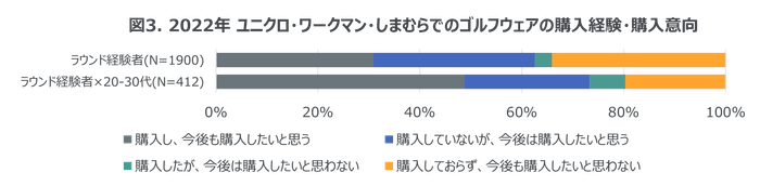 ・2022年のユニクロ・ワークマン・しまむらでの購入経験者は全体の約3割。20-30代は5割以上。