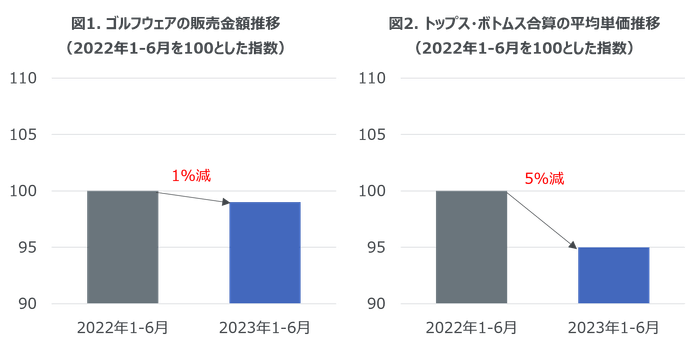 ・2023年上半期のゴルフウェア販売は金額前年比1%減。