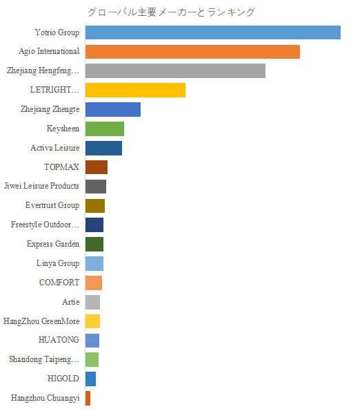 路億市場戦略(LP Information)のトップ企業研究センターによると、屋外用家具の世界的な主要製造業者には、Yotrio Group、Agio International、Zhejiang Hengfeng Top Leisure、LETRIGHT INDUSTRIAL、Zhejiang Zhengte、Keysheen、TOPMAX、Activa Leisure、Jiwei Leisure Products、Evertrust Groupなどが含まれている。2024年、世界のトップ10企業は売上の観点から約12.0%の市場シェアを持っていた。