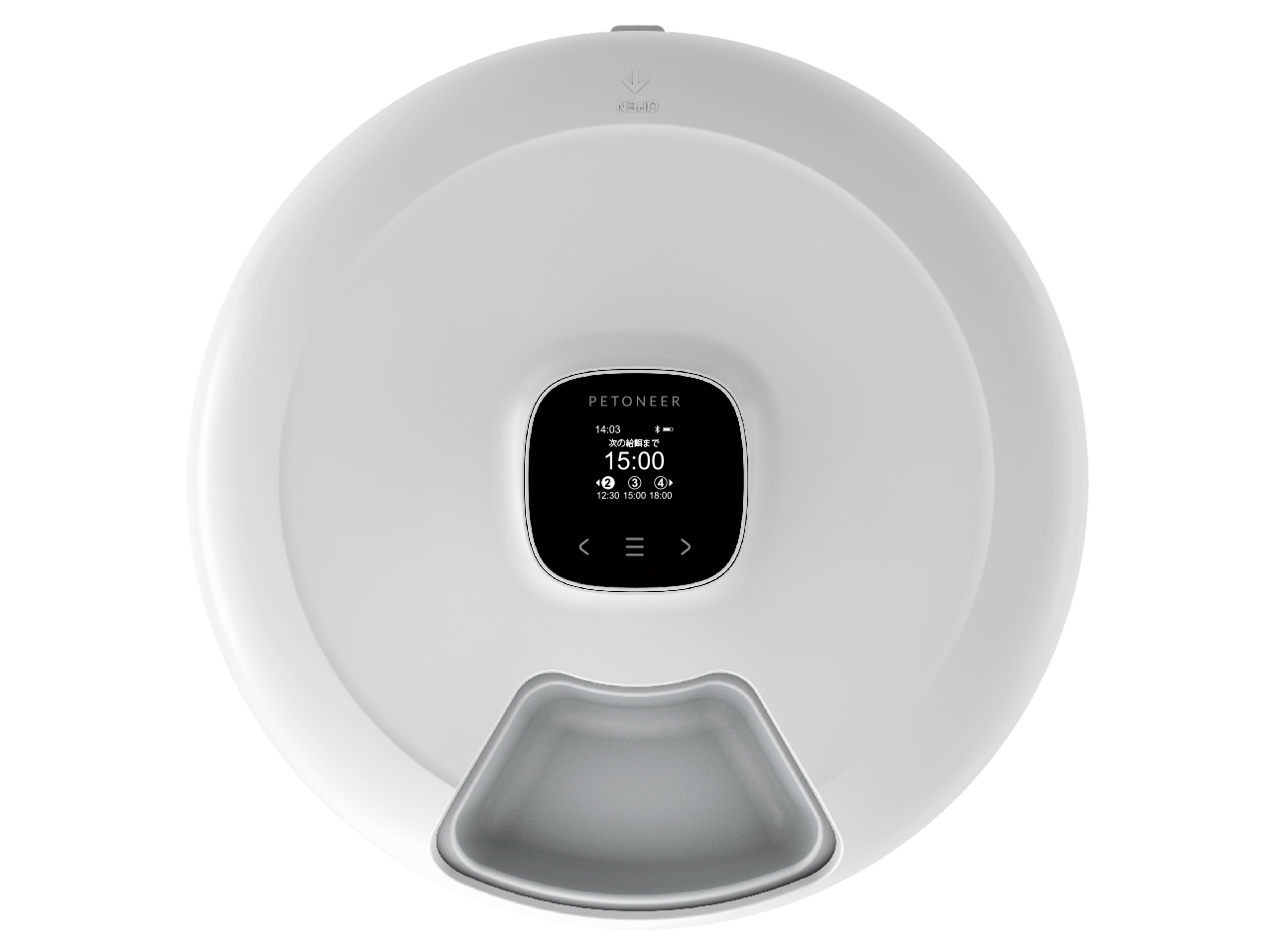 給餌器本体または専用アプリから、1日5回分までの給餌スケジュールを設定できます。給餌器本体に内蔵されたBluetoothでスマートフォンと接続。アプリからフリック操作で、スムーズにタイマーの設定ができます。また、給餌記録の確認や、リモコン代わりにタップ操作でその場で給餌する事もできます。